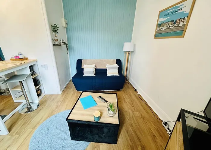 The 20 m^2 Le P'Tit Mersois is situated merely 6 minutes on foot from Eglise Saint-Martin and 90 km from Le Touquet airport.